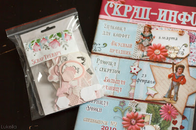 А вот и подарочек, который выиграла с помощью рандома в первом этапе- замечательный набор высечек Kaiser Craft и журнал Скрап Инфо!!